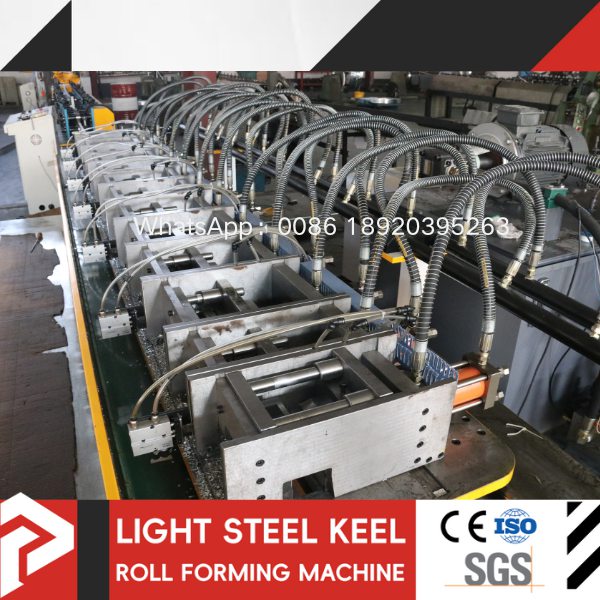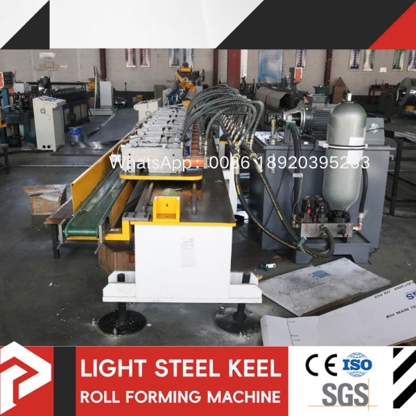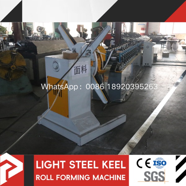 The t grid roll forming machine is an automated equipment that continuously rolls galvanized steel strip into light steel keels of various specifications through automatic unloading → leveling → forming → punching → cutting to length.