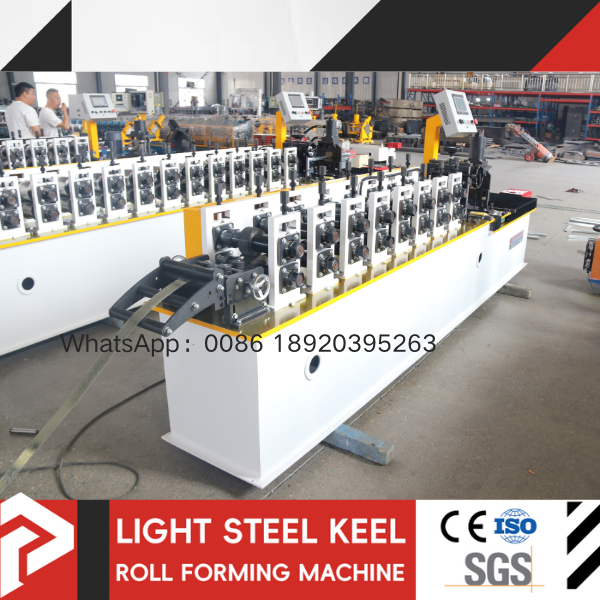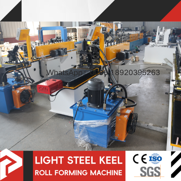 The angle iron roll forming machine is an automated equipment that continuously rolls galvanized steel strip into light steel keels of various specifications through automatic unloading → leveling → forming → punching → cutting to length.