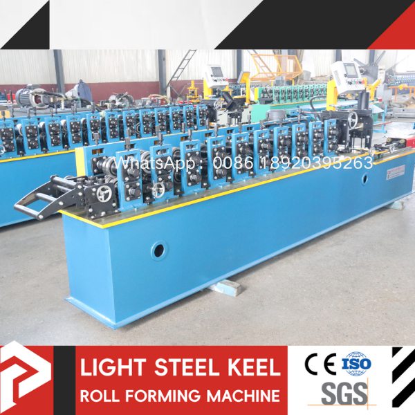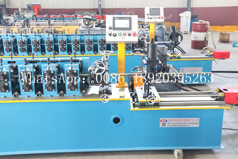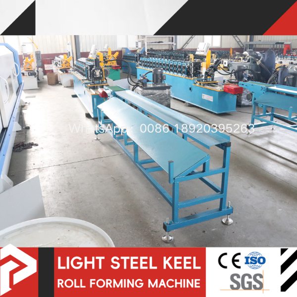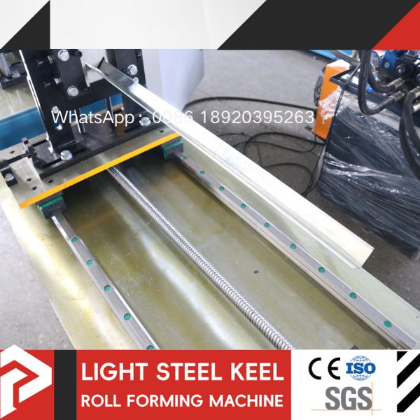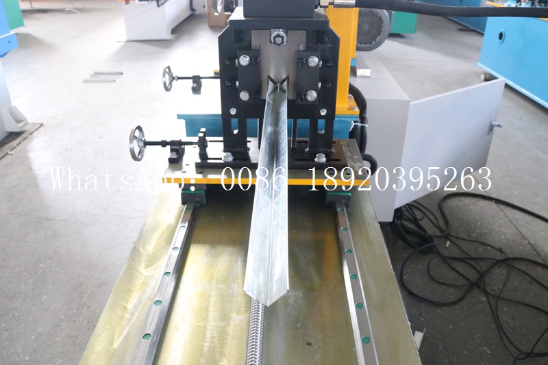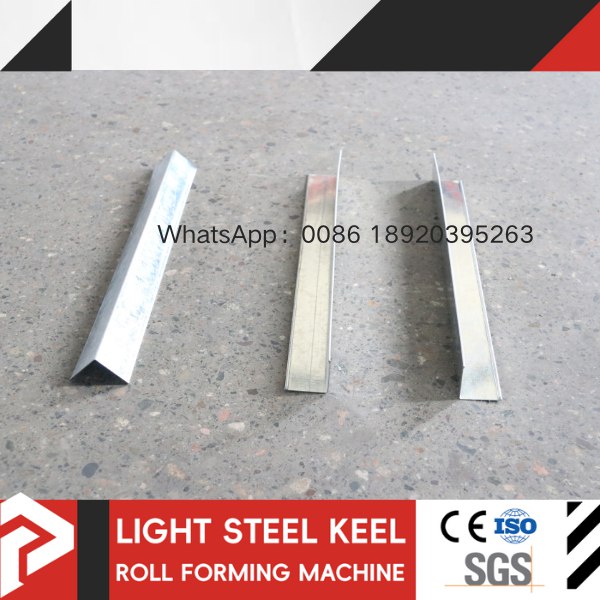 The angle roll forming machine is an automated equipment that continuously rolls galvanized steel strip into light steel keels of various specifications through automatic unloading → leveling → forming → punching → cutting to length.