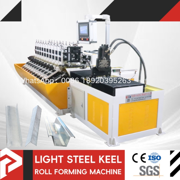 The automatic change 3 model in 1 channel patti machine is an automated equipment that continuously rolls galvanized steel strip into light steel keels of various specifications through automatic unloading → leveling → forming → punching → cutting to length.