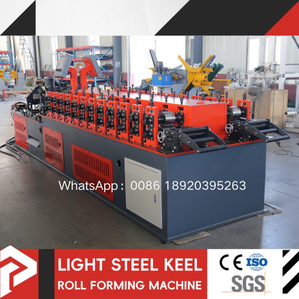 The metal stud forming machine is an automated equipment that continuously rolls galvanized steel strip into light steel keels of various specifications through automatic unloading → leveling → forming → punching → cutting to length.