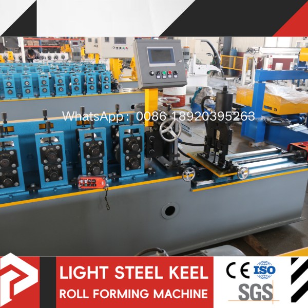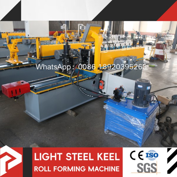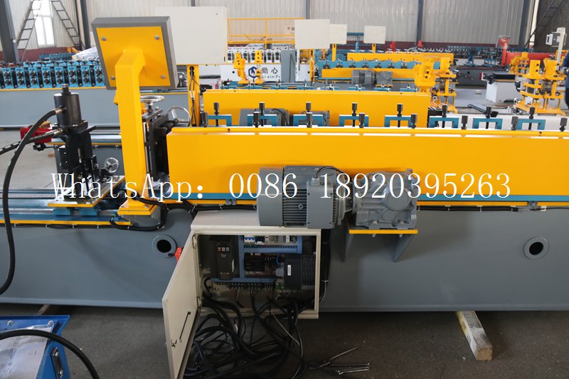 The steel angle roll forming machine is an automated equipment that continuously rolls galvanized steel strip into light steel keels of various specifications through automatic unloading → leveling → forming → punching → cutting to length.