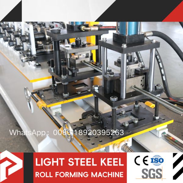 The steel stud roll forming machine is an automated equipment that continuously rolls galvanized steel strip into light steel keels of various specifications through automatic unloading → leveling → forming → punching → cutting to length.