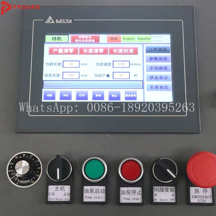| Sistema de control: PLC | Producción automática de toda la máquina. Puede ajustar lote, longitud, cantidad, etc. |